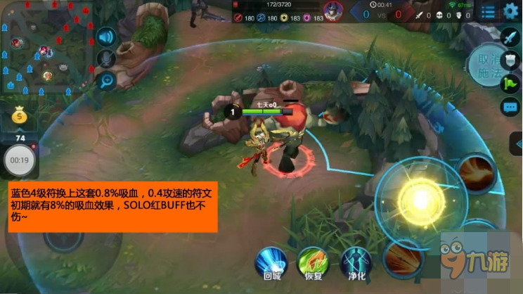有8%的吸血符后,前期打野怪的时候也不会太伤了,续航能力大大增加