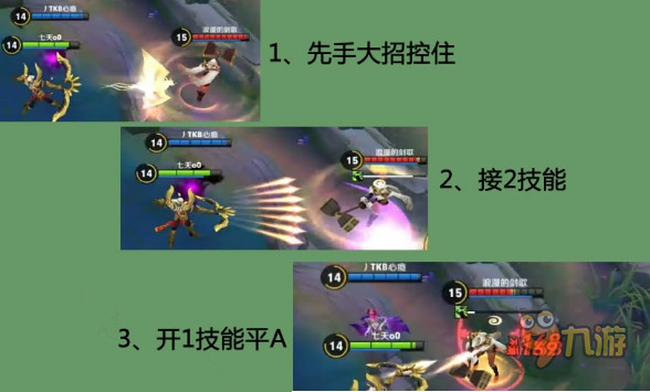 这是后羿常用的攻击方式,用大招先后,或后手控,接技能,然后平A,