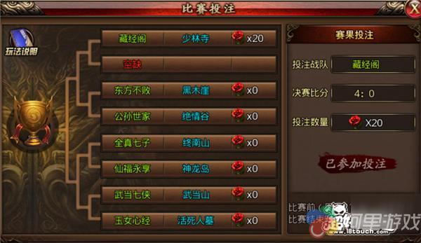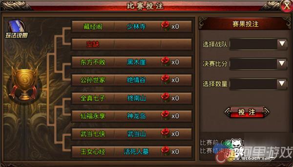 1.决出八强时,所有40级以上的玩家主界面右侧会显示出比赛投注的图标,点击即可打开投注界面;