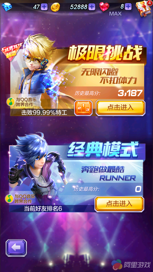 在极限挑战玩法中,玩家通过搭配各种续航类角色、宠物或宝物,想跑更远的距离简直是如虎添翼,不断突破自身极限,创造新的跑酷记。另外,在极限挑战新玩法中,还将引入段位赛机制,让你实现异步高分比拼,赢取豪华周榜奖励。