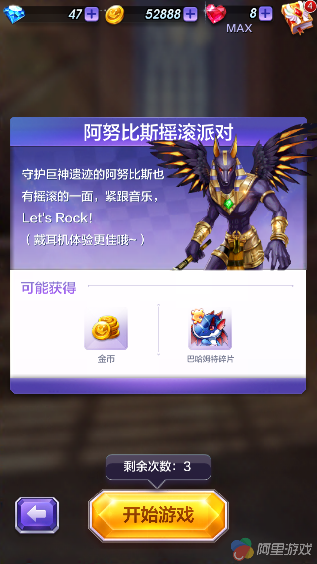 游戏中的秘境玩法受到许多玩家的追捧,通过秘境模式玩家可以获得大量金币与各种珍宝,为了让玩家有更多游戏体验,新版《天天酷跑3D》推出全新秘境玩法:“酷跑音乐祭”。音乐祭玩法需要玩家将音乐与酷跑结合起来,在阿努比斯音乐秘境中,玩家可以跟随音乐的节奏来攻击阿努比斯,如果玩家能够坚持到一曲音乐结束,就能击败阿努比斯,成功击败阿努比斯即可获取额外奖励宝箱!有机会获得稀有物品碎片。