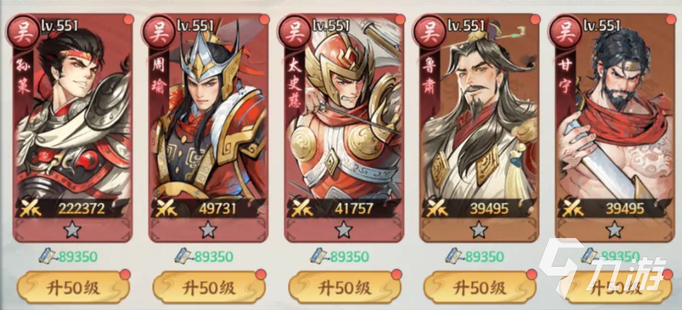 反正,百战群英前期阵容推荐并不复杂,主要是看抽到什么,倾向于围绕那些易获取、培养轻松、技能比较实用的武将来组阵容。蜀国队的武将单体素质高,适合稳扎稳打,没有严格的体系的之所,属于是打直伤的。然后吴国阵营的则是偏向于群体灼烧持续伤害,突出一个慢慢磨伤害。群雄系的则偏向于控制,利用寒冰和麻痹效果来“折磨”对手,变相是提升了己方的输出效率。不管是哪种体系,只要是抽到了红将,就都尽量围绕着红将作为核心来构建阵容,先用橙将紫将把队伍凑满编,等到后面再逐渐替换成全红将阵容,这个只是时间长短问题,毕竟红将有着比橙将更高的数值,更好的上限。大家如果还想了解更多该游戏其他阵容,可以前往九游百战群英专题查阅。