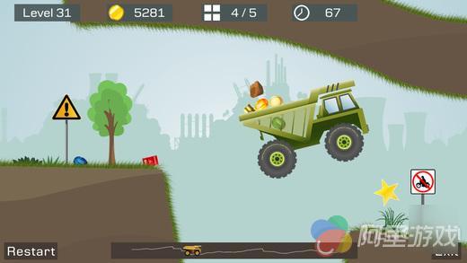 游戏内设重力感应和触摸两种操作方式,大家可以根据自己的习惯选择。由于你的卡车满载货物,所以在路上碰到颠簸的路况随时会有翻车的可能,而玩家们则需要利用自己灵敏的手指通过按键或者屏幕的旋转来控制卡车稳稳的到达终点。