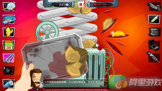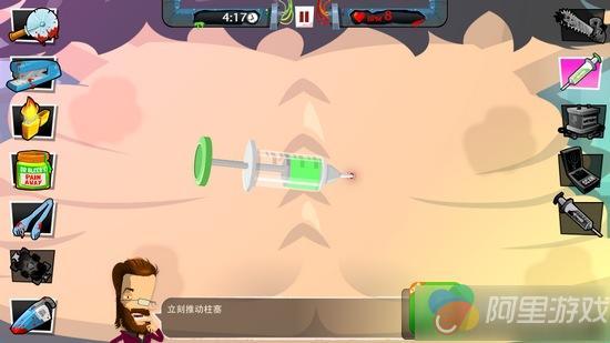 游戏采用了全屏滑动与功能按键相结合的操作方式,我们在手术过程中需要选择各种功能的器械,然后在患者身上点击、滑动等方式来完成手术过程,包括清理石头、缝合伤口、伤口消毒、涂抹药膏等等。本作的操作非常简单,不管是哪一个步骤都没有时间限制,相比现实中真正做手术那种紧凑与紧张感完全不同,大家可以非常轻松惬意的在患者身上进行各种处理,最终目的都是完成手术过程。