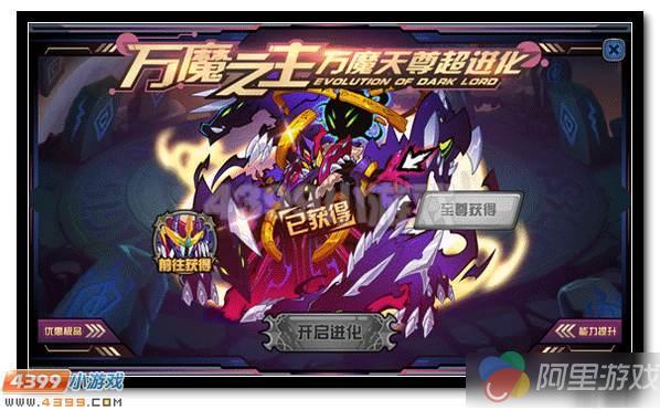 无上魔尊是由万魔天尊进化而来,一键进化需要998钻石,可以获得1级无上魔尊+专属全能+专属魂印+第五技能。当然也可以通过活动获得。