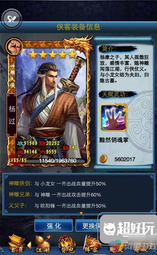 配缘的话就不用说了,郭靖的陈近南,无忌的谢逊(这爷两在冰火岛最后一关一起出),都是相对比较好刷到的紫色英雄。尽早的出橙色英雄可以不浪费每天的挑战,而整个游戏最重要的系统就是这个,每天第一次至少刷出1-2或1-3倍大侠以上,因为配合降财是双倍奖励。每天根据自己的经济实力最大化的刷挑战,得到的橙色碎片是你升星橙色侠客的重要保证,也是前期保持领先的利器!!还有那么多位置怎么办呢?
