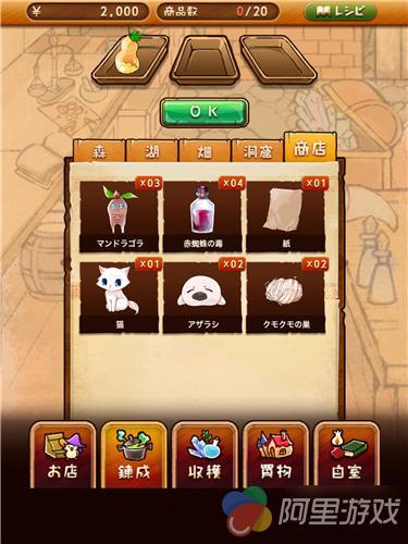 收集到了材料也买了图纸之后,玩家就需要将在森林与湖畔等收集素材,按照配方给的提示调配出商品杂货。游戏有意思的地方就在于,配方只是给玩家一些提示,并不会说明具体是XX和XX调和出来的,而是需要玩家根据提示,并对照材料介绍来猜!