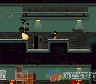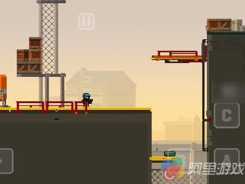 表面上看《监狱大逃杀》是一部标准的平台动作射击游戏,人们很容易把它当作是Quantized Bit此前推出的《热血神枪》(Hot Guns)的续集。正如其原名中提到的“Run&Gun”,你所能作的两类操作,一个是用屏幕左侧的两个虚拟按键控制角色奔跑,另外一个就是通过右侧的ABC按键,控制角色开火、丢弃道具和跳跃。