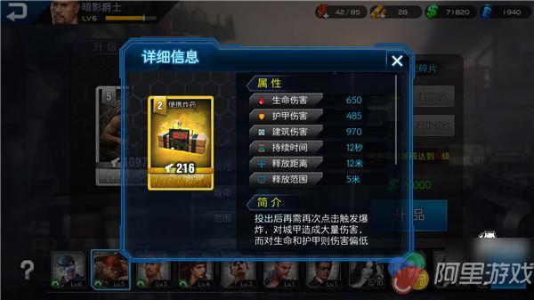 法官的群伤还是比较给力的,对于群体敌人的杀伤力还是必将强力的。而其技能便携炸药则是对于城甲拥有大量的伤害加成,对于初级碉堡和初级雷达有很大的克制,不过对于生命和护甲则伤害偏低,该技能打击敌人还是非常有限的。