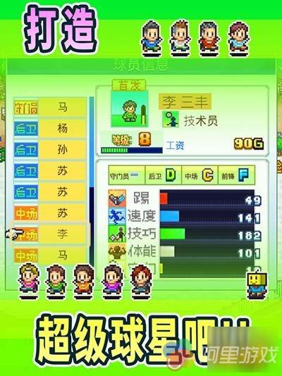 该作中的球员有着五种属性,根据不同的属性将其放置在其擅长的位置能够给队伍带来优势,而且每个球员的资质都各不相同,如何将优秀的球员签到队伍之中是游戏的重点之一。当然游戏最核心的玩法还是在于参加比赛,玩家作为一个领队,并不需要直接操纵球员,只需要选择球员、改变阵型和发挥临场战略即可。根据当前比赛的形势,选择对应的球员、阵型是赢得比赛的关键点。