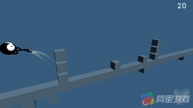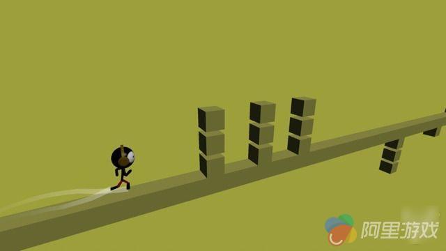 美术方面历来就不是这个系列值得称道的地方,而在本作当中,这个特点再一次被完美的“继承”了下来,除了2D升级为3D之后的立体感外,简单颜色的背景加上一条窄的不能再窄的跑道,就成了游戏的全部场景。当然,玩家熟悉的火柴人依旧将会作为主角在跑道上驰骋。至于音乐方面,旋律感十足的电音背景乐倒是非常不错,可惜这一切都在游戏正式开始的那个瞬间戛然而止,而在其后的过程当中,我们就只能听到脚步声以及角色坠崖的声声鬼畜了。当然,这看起来不起眼的画面却依然能够带来不小的快乐,而究其原因,在于游戏将角色的“死法”刻画的非常逗逼,玩家因为失误而造成的角色挑战失败会直接反映在角色的死状上,相当滑稽。