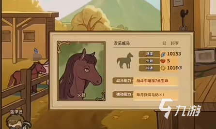 大家需要做的就是去获取高级马匹,这高级马匹需要在野马湖附近去碰,需要有一定的运气才能碰到,之后需要将其圈养起来过程中可以查看属性,高级马匹的话属性这一块一定是速度在200以上的,大家就需要去留这种马匹。