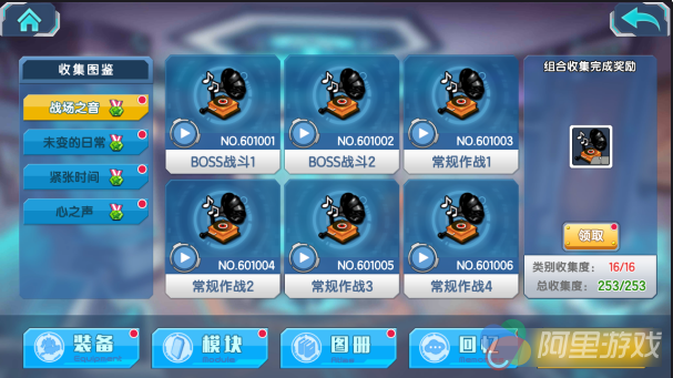 只有收集图鉴功能,完成组合收集可获得奖励。游戏中出现的所有背景音乐均可收入图鉴。解锁后可播放音乐。