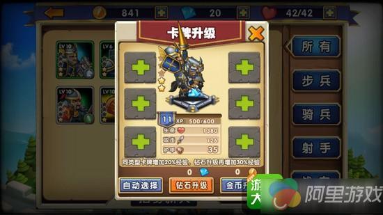 游戏中我们可以对每一种士兵进行强化升级,这与卡牌游戏有些类似,通过一定的资源来提升士兵的能力,这样在战斗中所有召唤出的该种士兵都会有属性的增加。游戏加入士兵强化功能,让玩家们可以不断提升自己的战斗力,体验培养士兵与军队成长的过程,让每一个玩家都拥有自己专属军队。