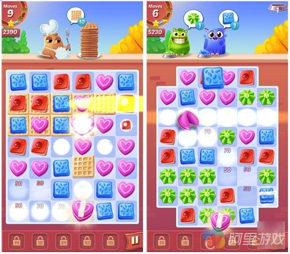 除了喂饱它们,有时候我们还需要消除一些其他饼干,不过这种任务在游戏中的占比并不高。说到消除环节的精彩程度,更多的是取决于有无奖励道具,当然这个道具是可以通过自己的努力得来,同样它们的作用就是范围消除,让你的游戏分数大增,同时又能够更快更好地完成任务。