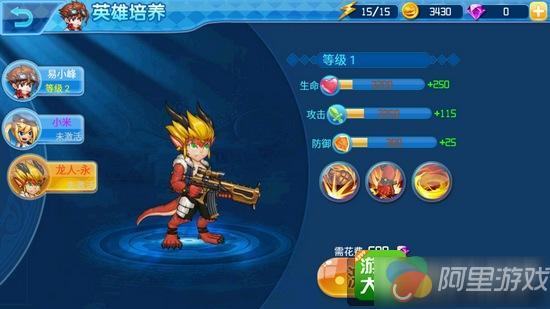 游戏为玩家们提供了三个角色,分别是易小峰、小米、龙人,三个角色中龙人的属性最强大,不过所需要花费的钻石也是最多的,一般而言我们的易小峰就足够了。多个角色的选择可以让玩家们体验不同人物的战斗方式,它们不同的攻击手段与技能招式,不过对于普通玩家来说,没有必要花钱去解锁另外的角色,我们可以通过金币强化的方式来提升主角的属性,这样也能大大增加角色实力,在战斗的时候也足以应付各种强大的BOSS了。