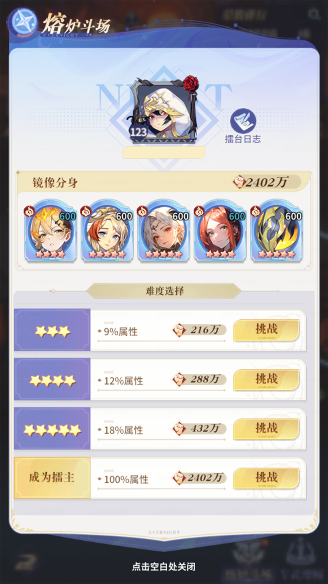 可自由选择不同难度的擂主,根据难度分为1~5星+擂主难度,选择的难度越高,胜利获得星数越多!
