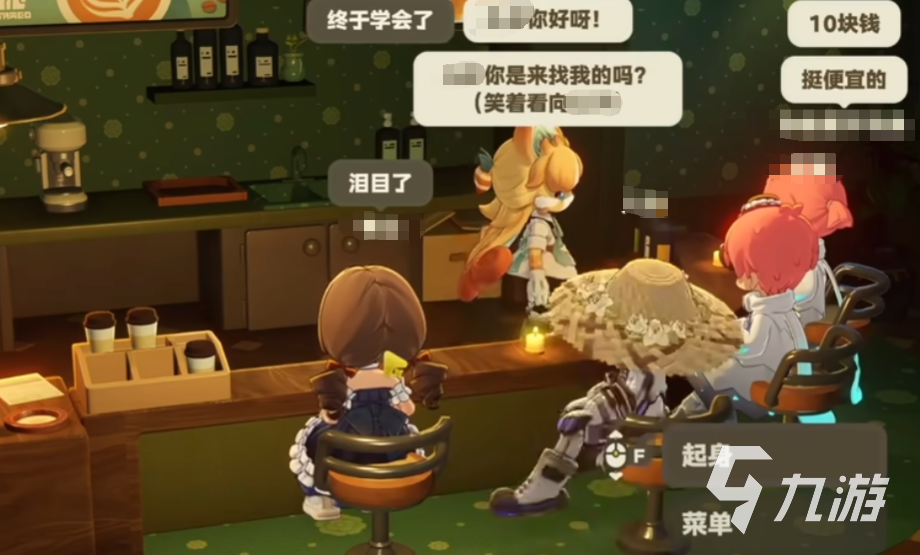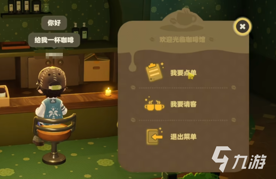 通过指引可以直接跳转到咖啡店门口,这时大家可以选择加入公用公开的多人频道咖啡厅,或者是和好友一起创建私人包间。按照需求选择完成后,就可以进入到咖啡馆内部了。进入后有位置供玩家们选择休憩,除此外还有着点单玩法,在游戏中劳作累了来点上一杯香浓的卡布奇诺也是不错的选择,当然游戏也推出了我要请客功能,可以给自己的朋友也来上一杯。