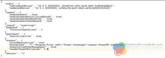 3、你将会看到一个满是代码的 JSON 配置文件,但是别担心,你只需要找到“steamvr”即可。