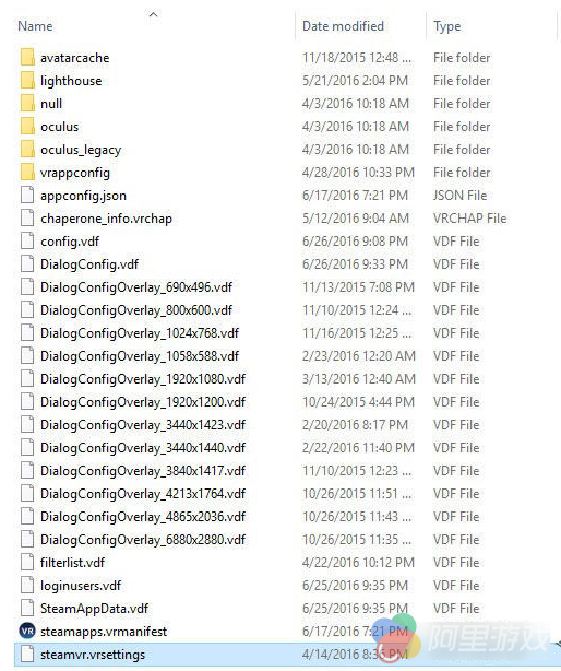 2、找到“Config”文件夹并打开,然后使用记事本或其他文本编辑器打开“steamvr.settings”文件(可参考下图的文件位置)。