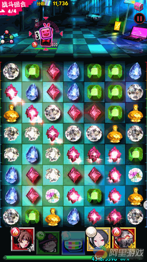 精致是对《18梦境异闻录》的画面的最好概括,在同类型的宝石消除类游戏中,粗糙的画面一直为玩家所诟病,但是《18梦境异闻录》一反常态地使用精致的游戏画面来吸引玩家。在《18梦境异闻录》在游戏人设方面表现出了日式手游一贯精良的风格,帅气的主角、可爱的少女和妖媚的魔女都是游戏的得分点。作为宝石消除游戏,宝石画面的优秀与否直接关系到游戏的整体品质,《18梦境异闻录》使用3D宝石来最大化的表现游戏画面的精良,3D宝石的完美切割和炫目的宝石光泽搭配上宝石消除时的碎裂特效让玩家在游戏中仿佛置身公主的珠宝箱。