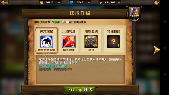 首先聊聊龙骑的前三技能,【神龙摆尾】属于群控物理伤害技能,尽管【火焰气息】属于魔法伤害,但是整体看来,龙骑属于物理力量英雄。那么这样一来,对于星罗秘境之中的魔法/物理免伤战队,大家就会知道如何选择了!【龙族血统】这个被动技能,诠释了龙骑在《英雄要塞》之中属于强力肉盾,攻防结合,不负冰女的委托!