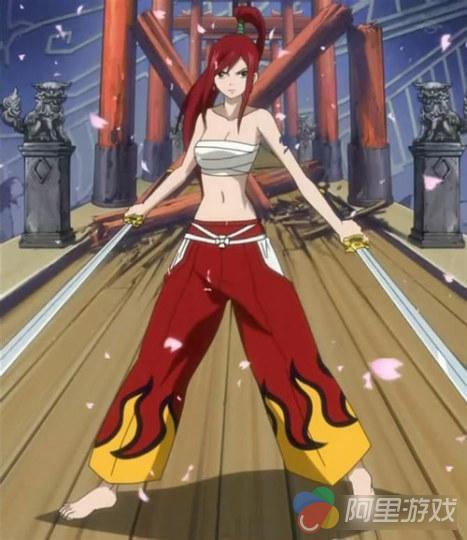 换上炎帝之铠后,艾露莎的头发会变成双马尾。换了发型的艾露莎特别不一样,与温蒂的小可爱双马尾不同,反而有一种小性感。主要用于防火能力的提升或使用火焰。特别用于对付火之魔导士。