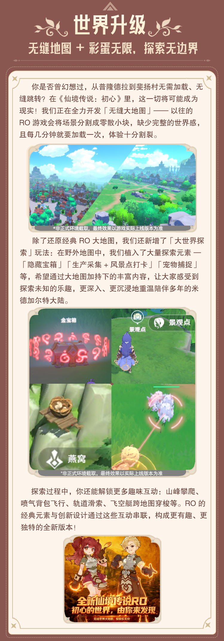 总的来说,我们游戏的核心亮点集中在以下六个方面:美术表现升级、战斗升级、世界升级、降肝减负、可控交易、长线设计。相信大家看完后,会对《仙境传说:初心》有更清晰的了解!