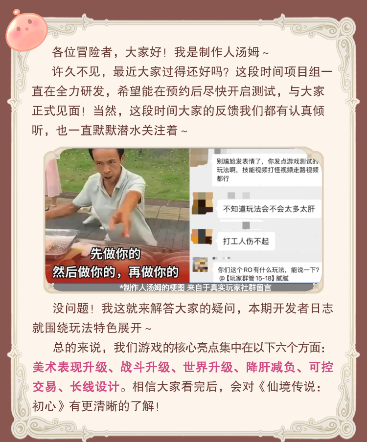 没问题!我这就来解答大家的疑问,本期开发者日志就围绕玩法特色展开~