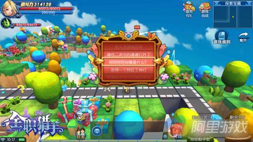 《全职猎手》中日常玩法,包括角斗场、宠物岛、秘境挂机、探索宝藏等。探索宝藏正是模拟大富翁的掷骰子玩法。在彩虹岛地图上向前或者后退,途经问号、宝石、宝箱、塔罗牌或者战斗符号。大富翁游戏令人怀念的,除了熟悉的格子地图,还有丰富的卡片道具,以及游戏设有各种意外情况的发生。探索宝藏活动,也隐藏着许多意外等你中招~