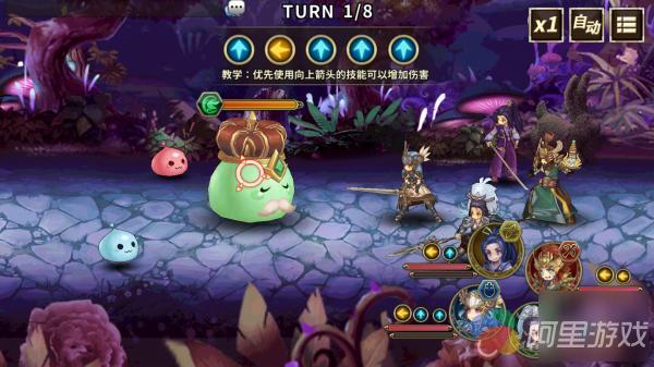 游戏画面色彩鲜艳,但是并不油润,看起来非常的清新自然。色调也是以明亮为主,虽然有些场景比较阴暗,但是并不会给玩家带来一丝不适。3头身的Q版角色不仅显得萌系十足,建模也是相当精细。除了角色外,厂商对于游戏场景的刻画也是无比细腻。比如地面石头的纹理,河水流动的效果,以及草木迎风摆动的效果,都能给你留下非常深刻的印象。与此同时,厂商在细节方面也是显得非常用心。玩家点击屏幕移动人物时,地面会有扬灰的效果,而点水面,则会出现水花四溅的效果。虽然这个效果看起来微不足道,但是会有一种暗示玩家自己在走动的感觉,轻轻松松的就增加了游戏的代入感。当进入到战斗中后,各种半透明光影特效就会展现出来。好在厂商拿捏得当,并不会出现表现力不足或者表现过度耀眼的情况。总的来说,在感官体验方,可以看出厂商的诚意,画面音效均表现出色,所以就算是你是严格的画面党,也会被其出色的素质所吸引。