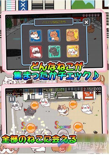 根据乐曲的节奏,在准确的时机点击按钮,就能收集到猫咪。点击的时间越准,评价就越高,能够收集到的猫咪就越多!游戏中出现的猫咪会来到主界面上,让整个屏幕变得更加热闹起来。游戏内当然也有猫咪图鉴,玩家可以在里面查看自己收集到的猫咪。