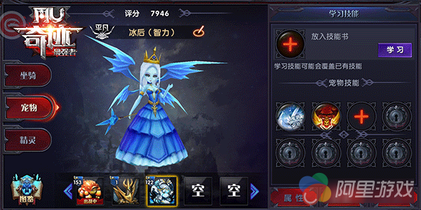 通过学习,宠物可以获得新的技能,技能随机学习在任意一个技能格。