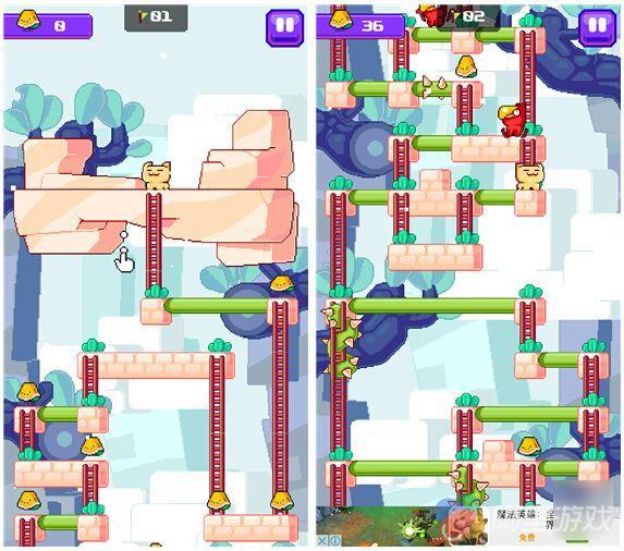为什么这只小猫这么热衷于西瓜,小编也是一脸懵逼,不过既然设定是这样,我们照做就是了。或许你会认为这是一款跑酷游戏,但实际上它与跑酷完全不沾边。游戏全程使用竖屏展示,可以看到场景被分为了若干层,层与层之间有楼梯连接,场景风格看起来还是比较赏心悦目的。