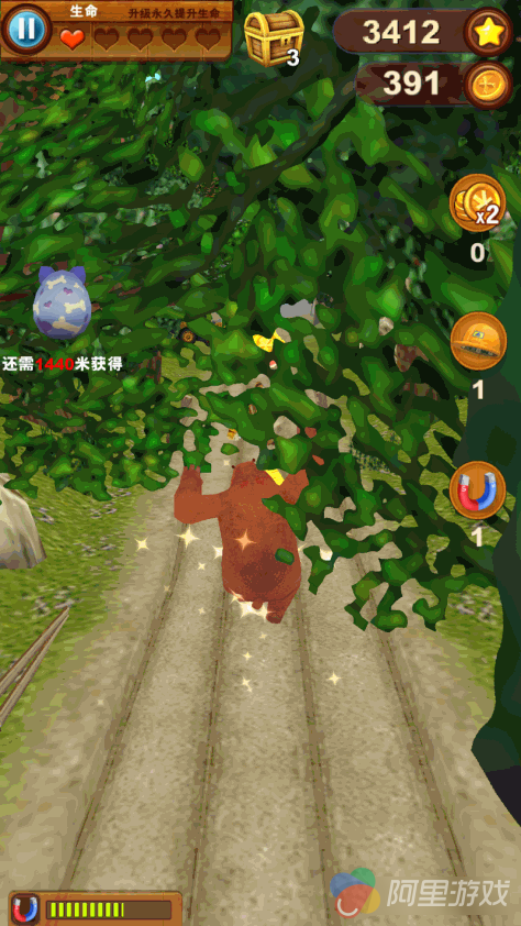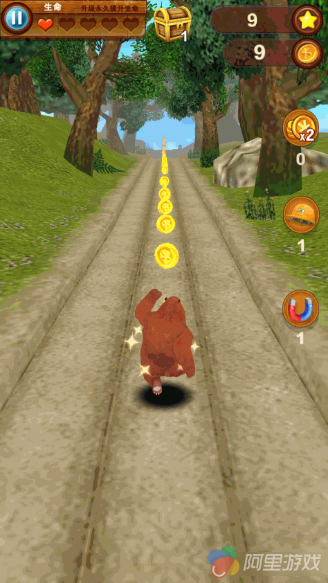 跑酷类游戏相信玩家们已经司空见惯了,无论是上天入地,潜水钻地,只要是玩家们想到的,游戏的开发商一定都能开发出来,小编玩过的跑酷游戏至今也已经不下十几种,无论是像一些迪斯尼公司或是漫威等大公司出品的游戏,或是连百度搜索都搜索不到的小公司出品的跑酷游戏,在玩法上基本都大同小异,无非就是滑动屏幕中的角色向前方奔跑躲过障碍,顺便再收集几个金币,在其他的玩法上并没有看出什么太过于亮眼的东西,玩久了也就觉得也就那么回事。今天给大家介绍的《熊出没之熊大快跑》就是一款非常卡通的跑酷游戏,具体该作都有哪些特点呢,下面就和评测室一起来体验一下吧。