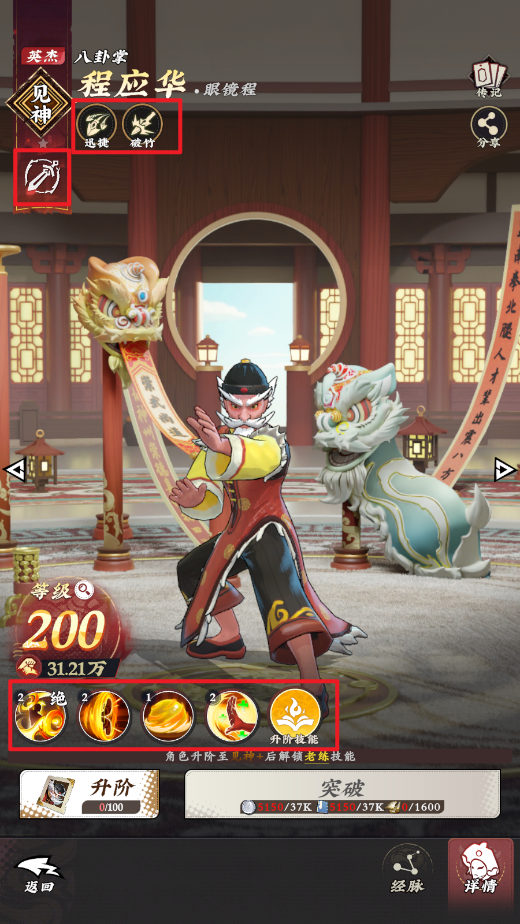 以程应华为例,讲解如何进行英雄搭配。程应华拥有“破竹”和“迅捷”两种不同的角色共鸣。