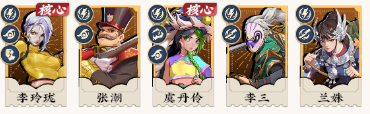 上阵英雄:李玲珑、李三,虞丹伶、兰姝、张潮