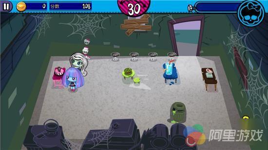 游戏的玩法就是我们平常所接触到的餐厅经营,当然相应的变种也有很多,比如理发店、美容店、商场什么的,每一天都会有源源不断的客人前来光顾你的小店(游戏中则是食堂),这些客人就和动画片里一样,有鬼魂、狼人、吸血鬼、海怪什么的,当他们进入食堂之后,就会提出想要吃的东西,接着你既要把他们拖拽到相应的座位上,还要点击一下安排空闲的小鬼上去招呼。