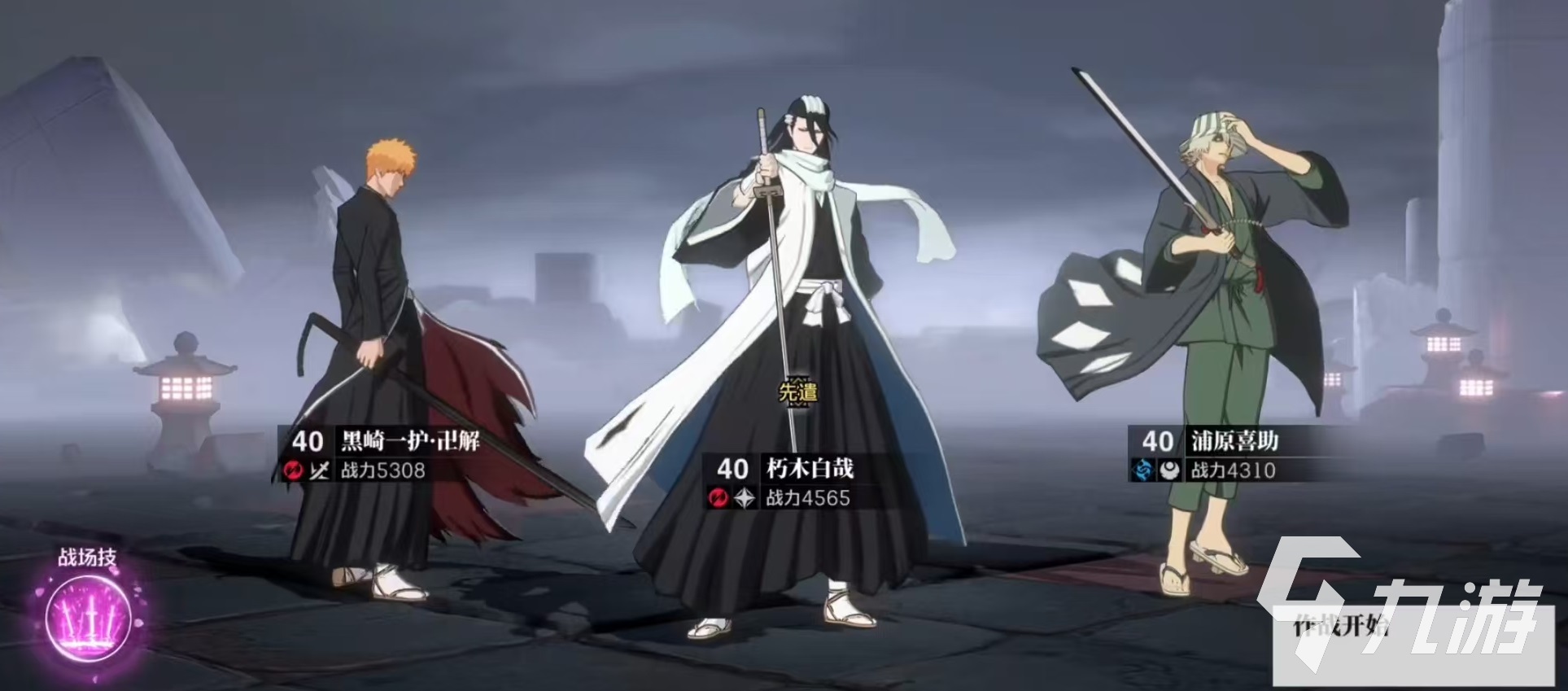 战斗开始之后,主力输出选择黑崎一护,利用它普攻段数高,伤害充足的优势,再加上它的技能月牙天冲能够远程输出还可以近身输出,打这种关键的目标非常好用。战斗中对大部分时间都是黑崎一护在输出,朽木白哉和浦原喜助都是短暂出现作为辅助。
