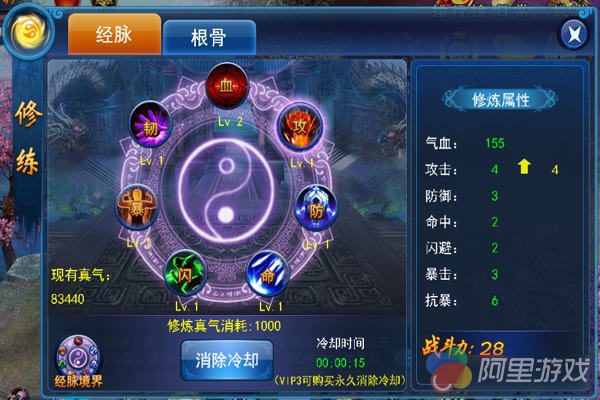 玩家可通过消耗真气提升经脉等级,真气可在日常活动、祈福中获得。