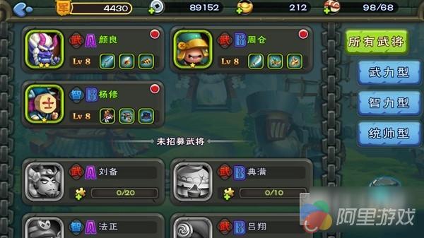 游戏中玩家们的将领可以进行强化升级和装备强化,玩家们通过不断强化来提升将领的战斗力,这样在与对人作战的时候才有更大的胜算。游戏对将领特别加入了装备升级和装备进化,这与卡牌游戏的角色成长系统有些类似,不过本作将其简化了一些,装备无需购买,只要强化即可,玩家们可以随着自己等级的提升来强化装备,以此就可以大大提升队伍的战斗力了。