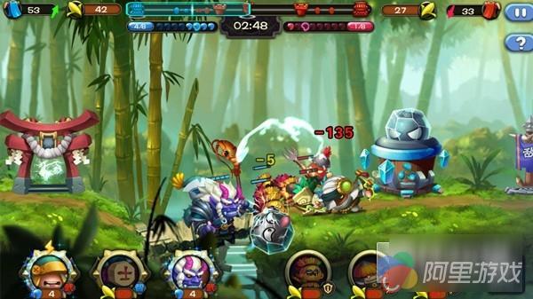 游戏采用了横版2.5D画面呈现,角色们是非常Q萌的大头娃娃造型,就连大家熟悉的三国英雄将领也是如此,少了一身豪气云天,多了一份温婉可爱,不过从外型上依稀间还是能看出他们的身份,当然也仅限于大家熟悉的张飞、关羽、赵云等知名英雄了。Q萌的卡通角色好像是时代的最新产物,现在不管是已经长大成人的老玩家,还是新一批小玩家,都对Q萌的东西毫无招架能力,本作在画面上就是用Q版来吸引玩家们的关注,不过游戏在背景描绘上也毫不示弱,高清的山水画面,细腻的场景建模,再加上战斗中灵动的人物肢体动作,这些都为玩家们呈现出了一场精彩又热血的战斗场面。