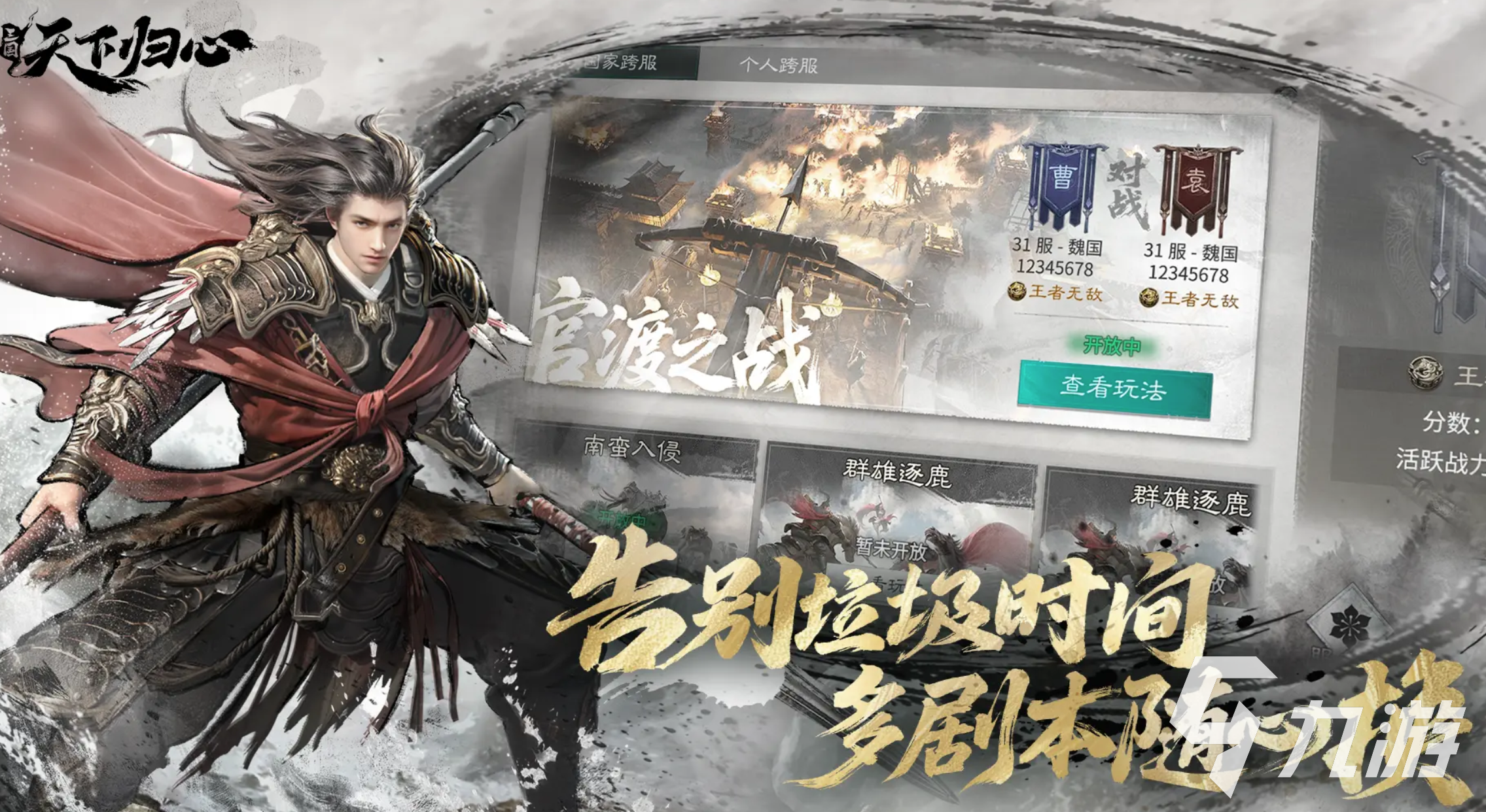 玩家如果想第一时间体验,可以提前在九游app预约,在这里能够获取最新的安卓资源与动态消息。虽然尚未全面上线,但从已开放的测试内容来看,《三国:天下归心》已经展示了不少核心特色。与传统SLG相比,它主打“不种田、不内卷”的快节奏国战体验,去除了许多繁琐的资源积累过程,让玩家能够更专注于战斗和策略。