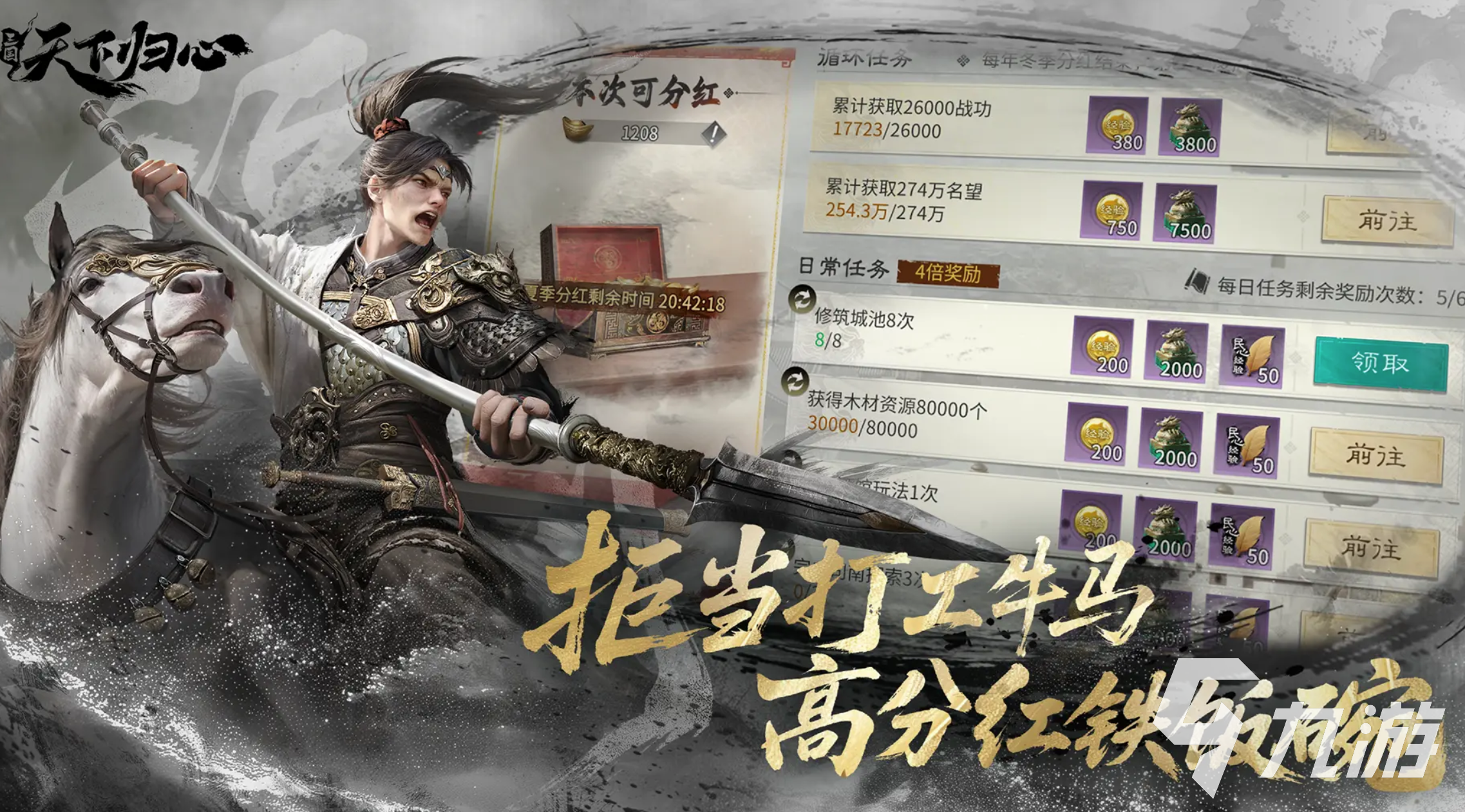 游戏本身的结义测试开启与7.23,而公测时间目前尚未公布。如果大家对本作感兴趣的话可以直接到九游的三国天下归心先进行关注,后续会为大家公布具体的上线时间。大家在本作中可以说千万别被SLG吓到,这里真没那么肝。传统那些逼你定闹钟收菜、熬夜抢资源的套路,它基本都摒弃了。这款三国SLG手游,没想着教育你历史,就想让你下班摸鱼时,也能爽快地调兵遣将、玩转合纵连横。加入一个国家,打架、建城都能跟着分红领工资,不用非得抱土豪大腿。每天任务半小时搞定,甚至看你不爽这个国家了,拍拍屁股就能转投别家,而且没有转国惩罚。