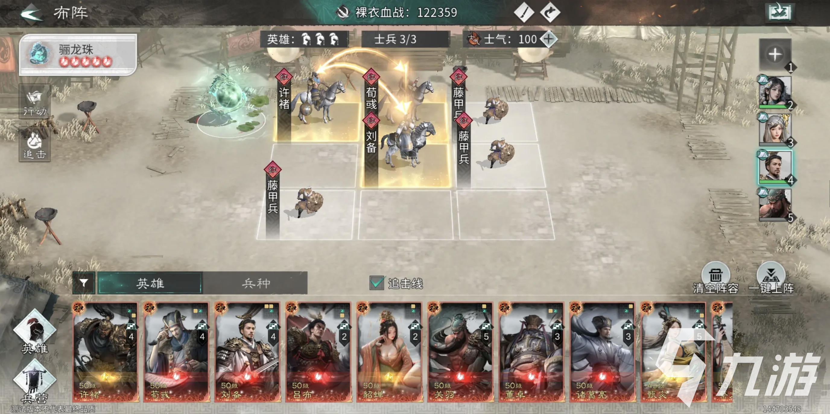 英雄站位:荀彧不占用追击格,孙策站荀彧的追击格,并与郭嘉互站追击格。