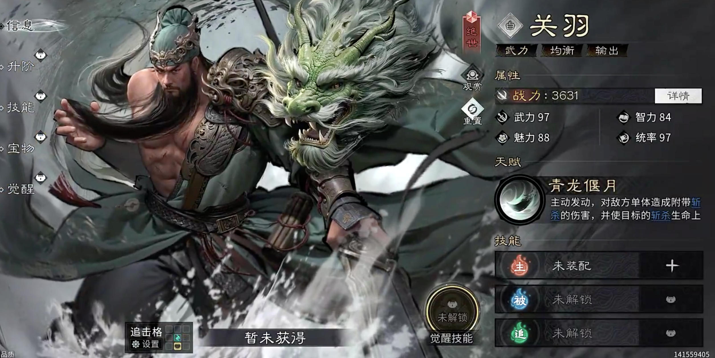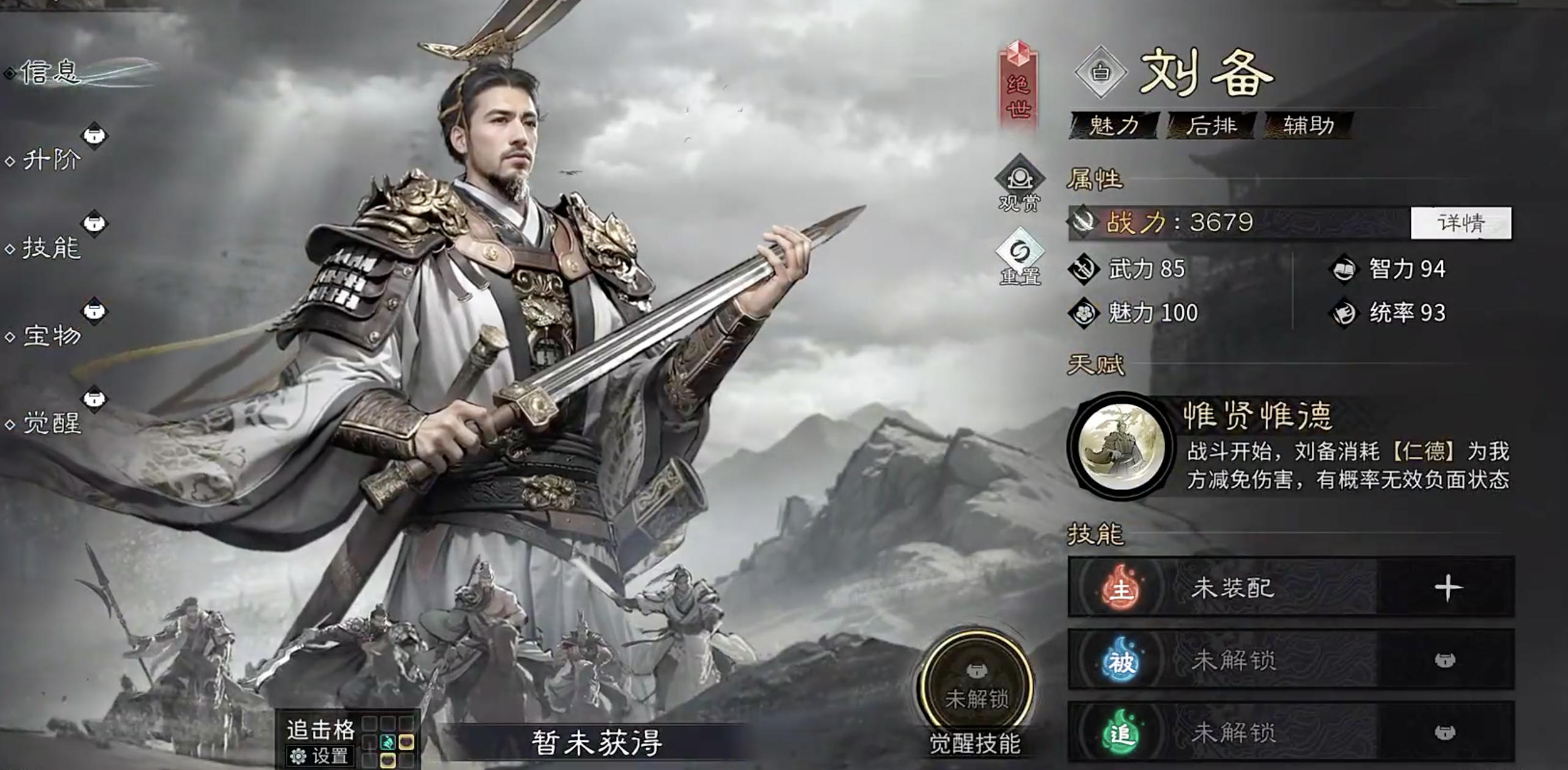 该武将的核心之处在于,拥有独特的追击机制。天赋在造成损伤后,对目标使用“额外攻击”,针对单体追击,优先会挑选后排兵力更高的对手,1级时,主要对敌方造成168%物伤,如果对方兵力百分比高于自己,还能额外造成48%伤害,也就是1次可实现2次输出效果。觉醒技针对当前兵力百分比最高的3个对手,使其都造成168%伤害,使用时若自己兵力比30%低,自己和己方其他骑兵可获得“绝尘”,并不会受到控制状态影响,提升20%追击伤害。短时间内可连续出手,让其具备极强的爆发潜力,尤其是在针对后排脆皮角色具有突出优势。