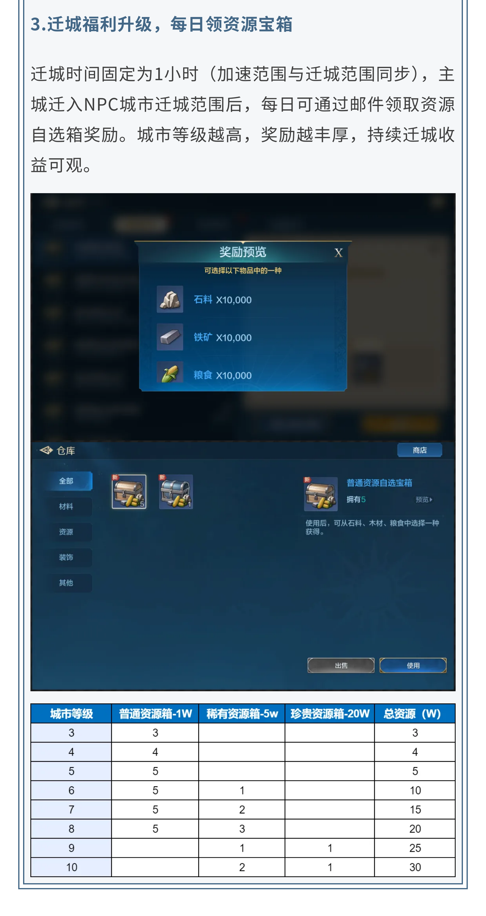 1、玩家可以将自己的主城或是分城迁移到想要的位置上。