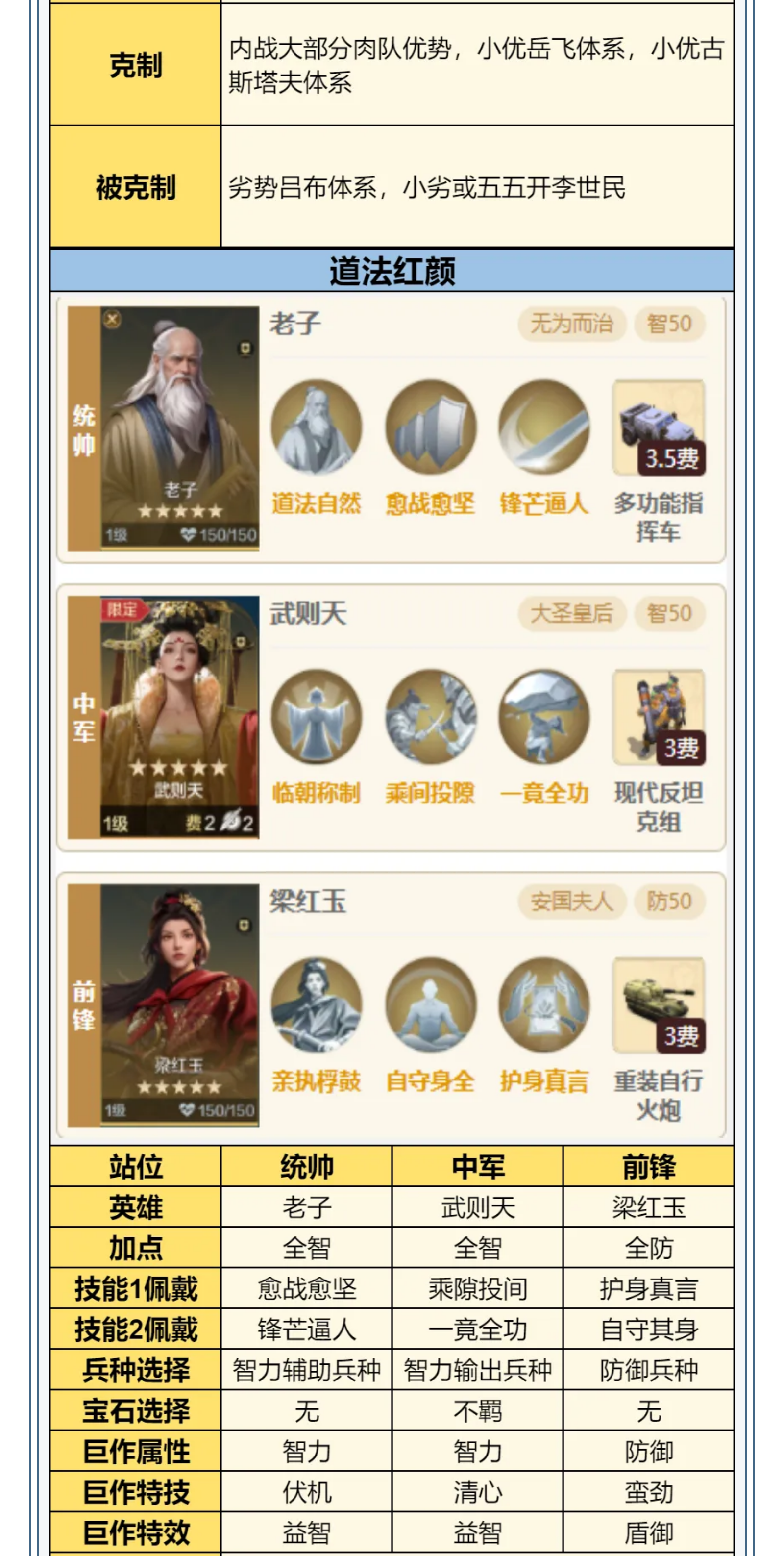 兵种和技能搭配上,伯利克搭配机动性强的骑兵单位,技能携带“控局”“战壕”;角斗士是前排承伤位,兵种需要一定防御能力,类似“重装战士”一类的高防兵种,技能携带“寒光铁衣”、“动摇军心”类的输出或者控场技能;红发女王以输出为主,携带高攻兵种,技能带“风暴之箭”“花郎武道”的输出技能。