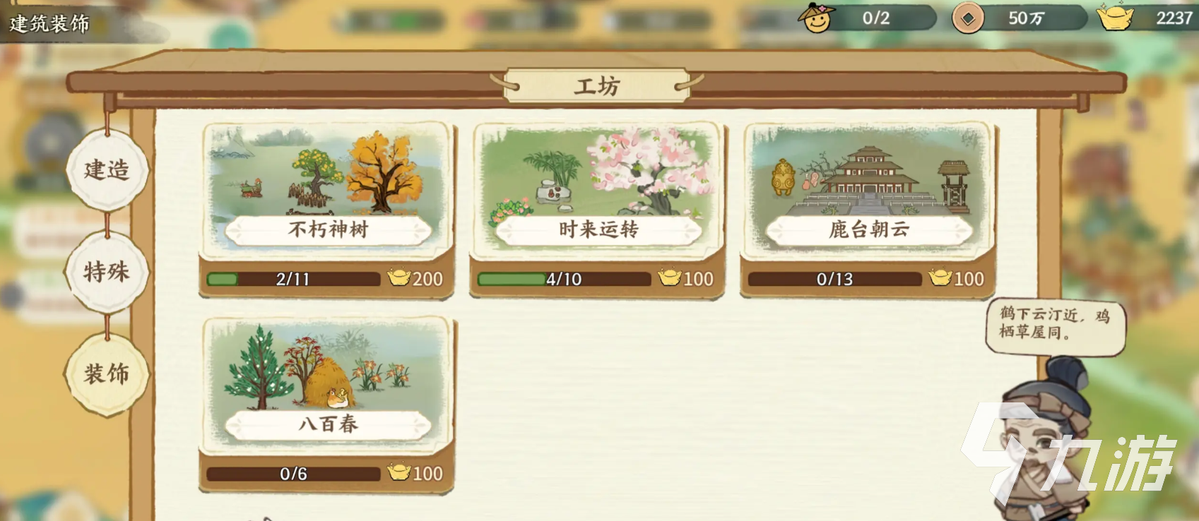 初始对新手来说,自然是要跟住主线的步伐走的,这样就能尽快的解锁一些核心建筑,比如伐木场,畜牧场,庖厨,采矿场,商铺之类的,1级建筑是不会自动有资源产出的,只能去做定的小游戏来获得资源,建筑2级时就能自动产出资源了,资源产值,和建筑内部科技,还有入驻名士的养成度挂钩,所以在初期阶段,要优先将重点的建筑都提升到2级。升到8级,可近况加入较为活跃的绘院,这里的求助能大幅减少建筑升级所需时间。