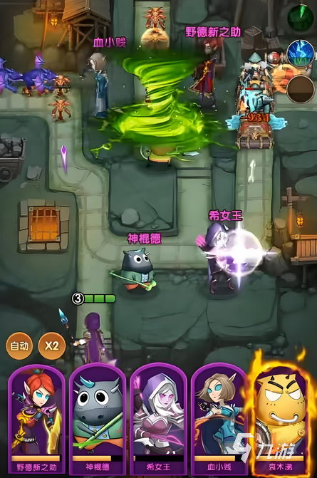 游戏入门主要是围绕三个步骤,进入关卡之后,玩家就需要在敌人行进的路径两侧部署英雄卡牌。这些卡牌就相当于自动攻击的防御塔,不同角色所承担的职能分别是辅助,输出,还有坦克。哀木涕作为坦克,可以放在前排承受伤害。傻馒则可以释放群体技能,能眩晕控场。在战斗的过程中,大家就需要把握技能释放的时机,例如敌人密集时就可以用剑圣的范围性技能去清场。残血时可以靠治疗续航,通过手动释放大招,就能轻松的扭转战局。